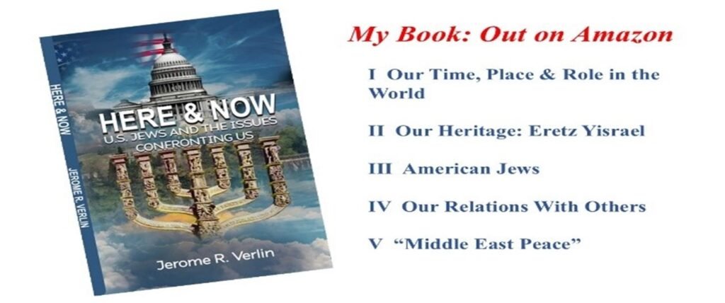 Optional PS:  I have plenty to say in my new book Here & Now: U.S. Jews and the Issues Confronting Us on “West Bank” and the loaded lexicon’s other pejoratives.  E.g.: Chapter 3: Debunking Toxic Terms & Malevolent Myths; section 3.2.4 “Judea-Samaria” as “the Biblical Name” for “the West Bank”; section 3.2.6 “West Bank” Isn’t a Synonym for “Judea-Samaria,” It’s an Antonym.  And plenty, Chapter 9 Gone Astray, lamenting key U.S. Jewish groups going along with anti-Jewish homeland terminology in criticizing our people’s homeland’s assertion of right to our homeland.  Go see.